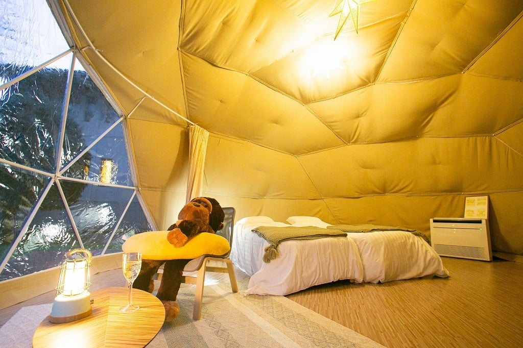 【glampark ヘルシーパル赤城の魅力③.冷暖房完備の広々としたドームで快適ステイ】