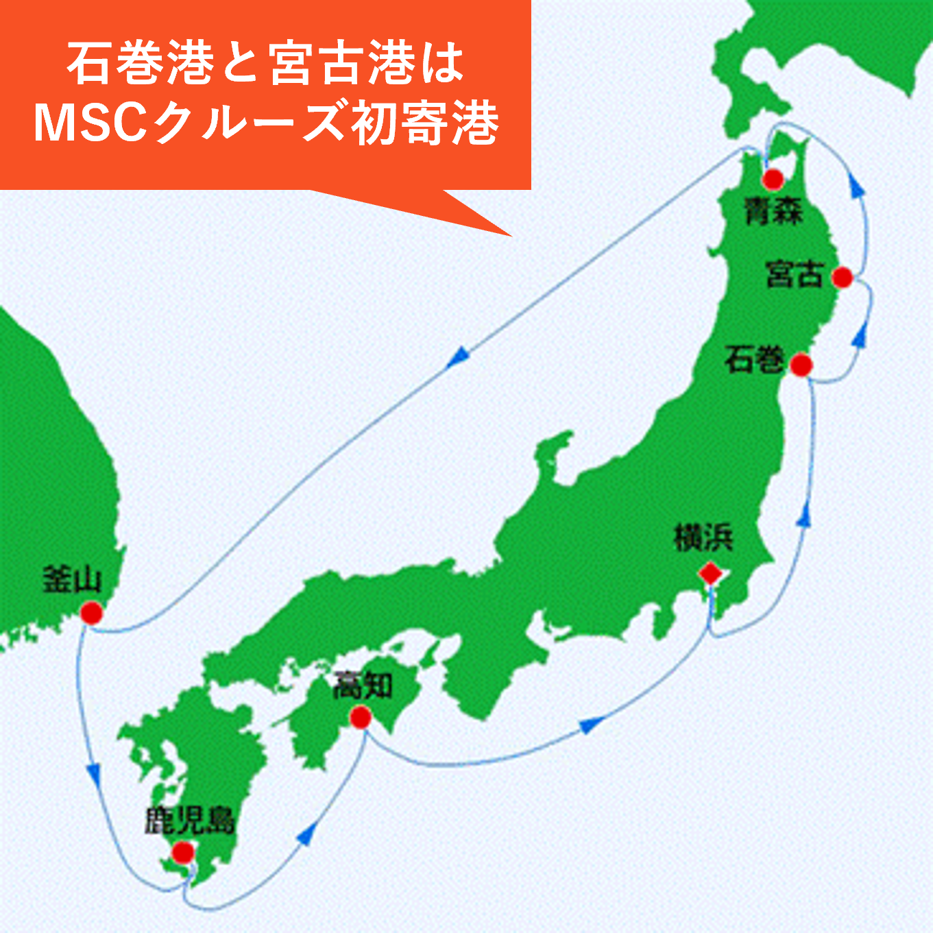 寄港地:石巻、宮古、青森、釜山(韓国)、鹿児島、高知