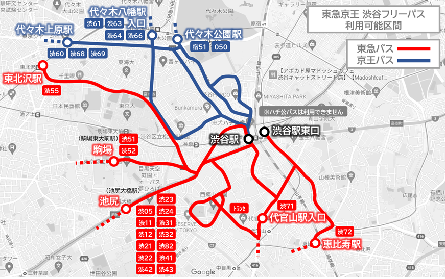 ※ハチ公バス(渋谷区コミュニティバス)は利用できません