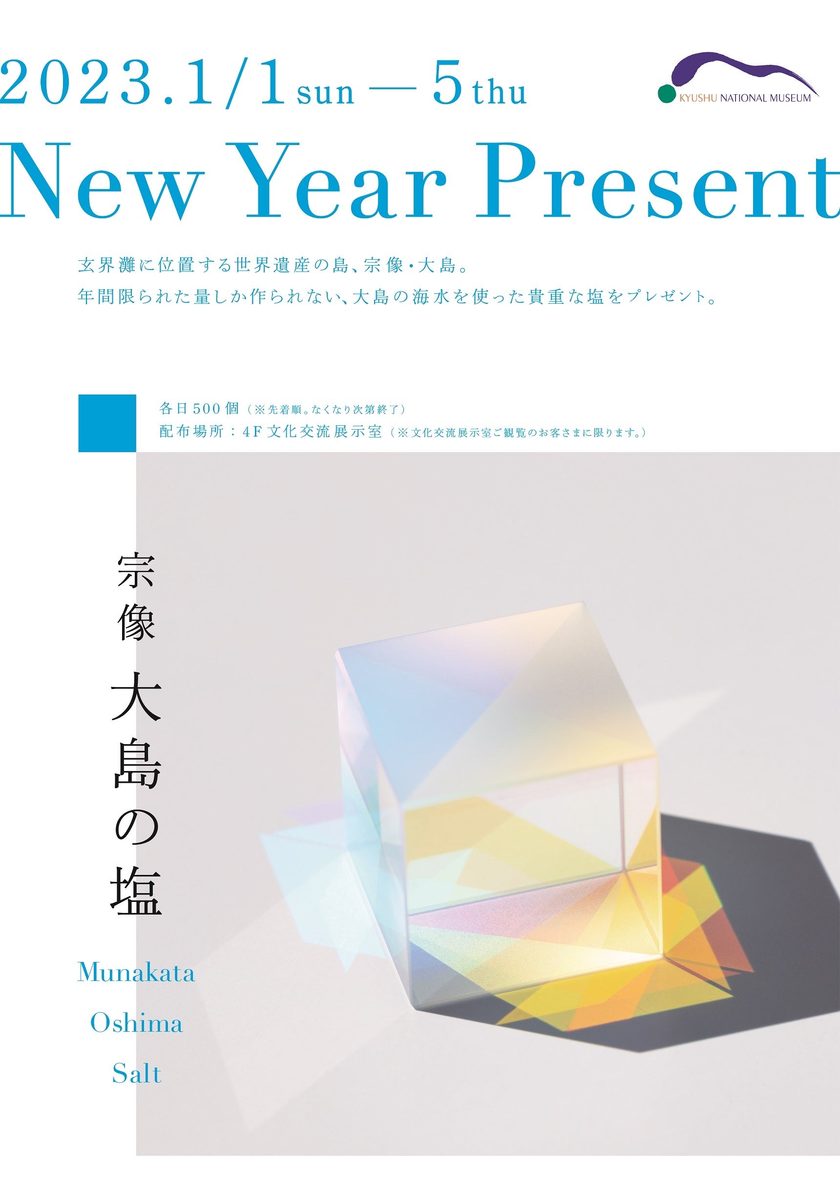 お正月の文化交流展示室では、ご来場の方に「宗像・大島の塩」をプレゼント!