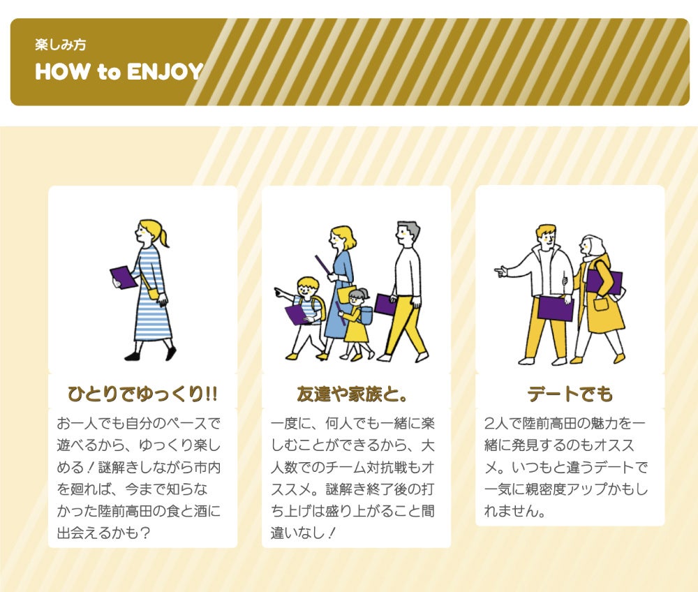 | 楽しみながら防災を学び、まちへの経済効果を生む防災謎解きまち歩きの通年型のコンテンツは、地域への必要性と意義、希少性から初めての取組みとなりメディア露出が見込まれます。 | 新型コロナウィルスで、市内ならびに観光需要が減少し、大打撃を受けている地元店舗に対して、まち歩き要素を加えることで、店舗認知と送客を実現します。 |