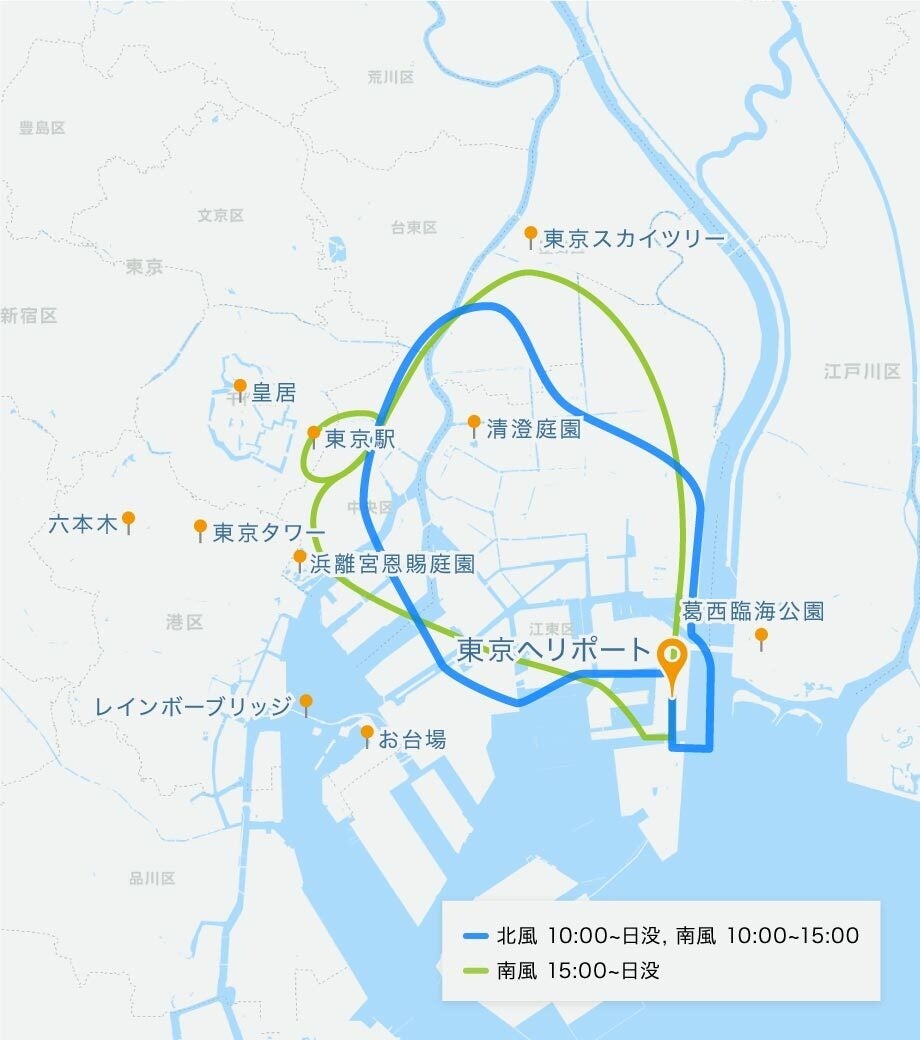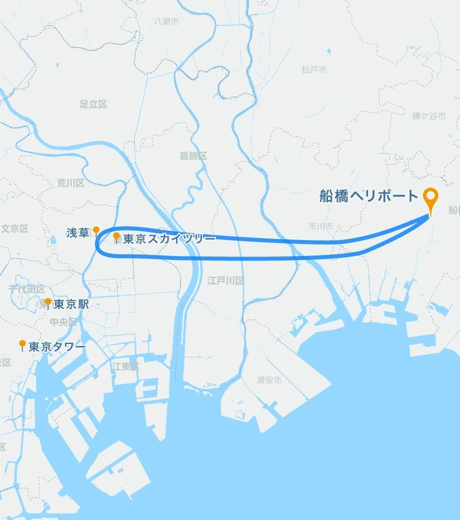 昼:東京ヘリポート 夜:船橋ヘリポート |