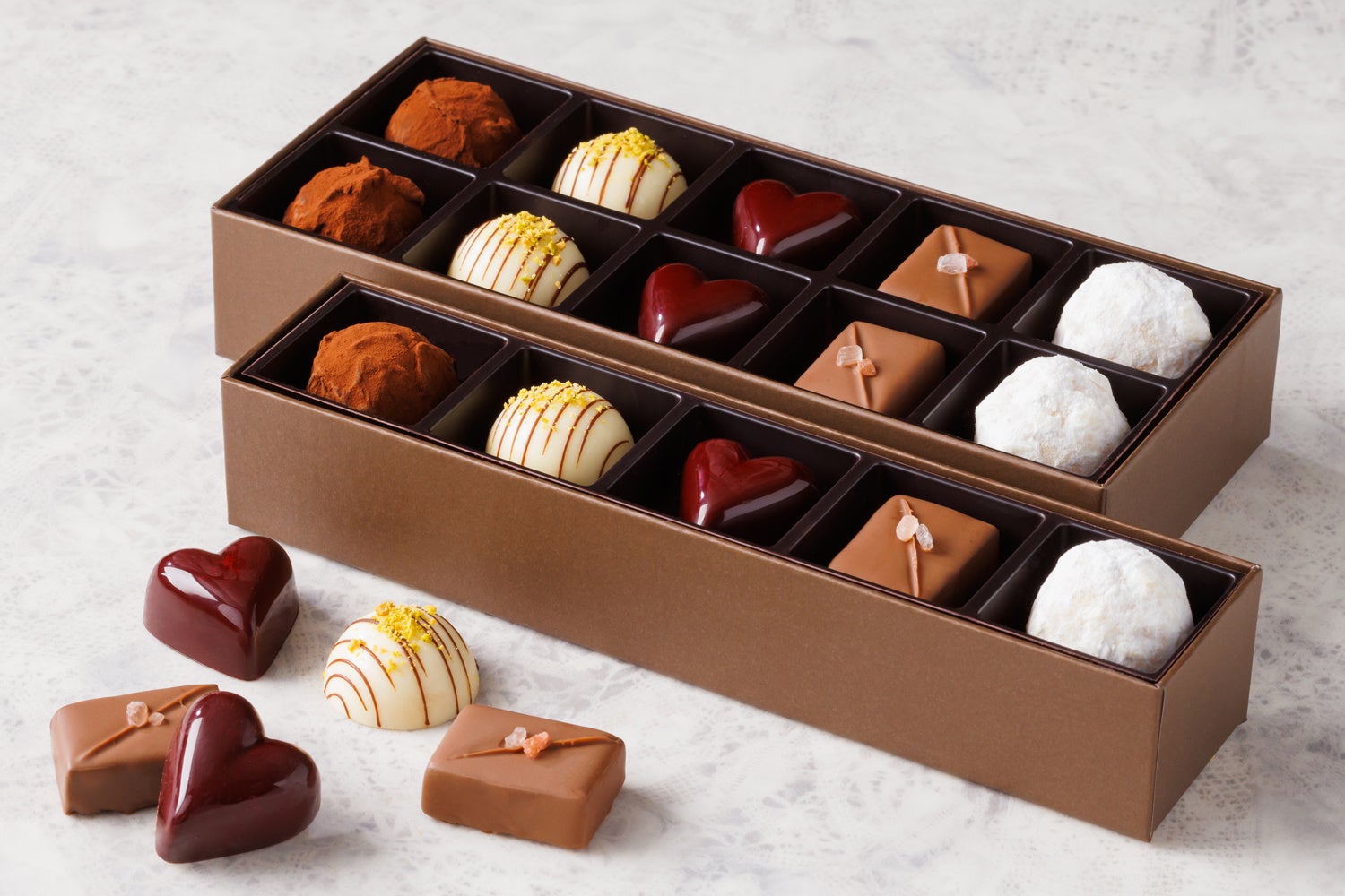 毎年人気のボンボンショコラの詰め合わせには、ローストされた風味豊かなピスタチオや、爽やかで香り高いオレンジグランマニエ、トンカ豆の甘い香りが引き立つトリュフなど、多彩なフレーバーを揃えました。