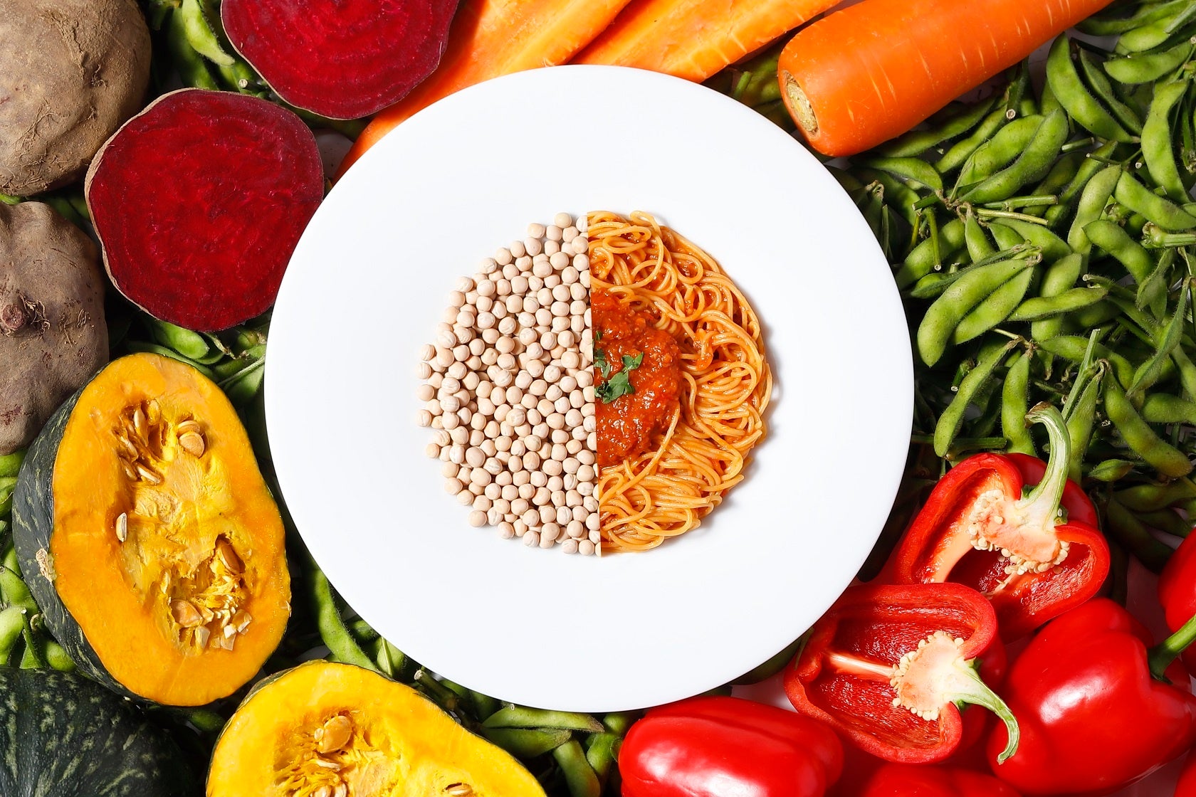 普段捨てられるうす皮まで使った黄えんどう豆100%の「ゼンブヌードル」を使用することで、環境負荷や食品ロスを減らすだけでなく、素材本来のおいしさや栄養素を引き出し、「おいしく、健康、環境にもやさしい」三拍子そろった「新しい主食」をご提案いたします。