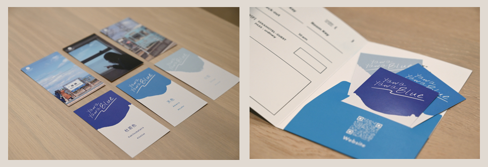 まずチェックインの際には、青のカタログからお客様にお気に入りの青を選んで頂きます。全31色の多彩な青は、全て高岡の日常を彩る青ばかり。