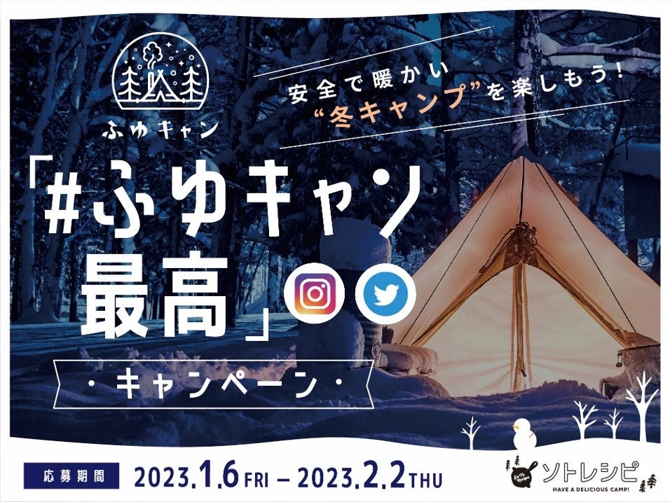 キャンプ飯レシピサイト「ソトレシピ(https://sotorecipe.com/)」を運営する株式会社ソトレシピ(本社:東京都渋谷区、代表取締役:千秋広太郎)は、安全で暖かく楽しい冬キャンプを啓発する「ふゆキャン」プロジェクトを実施しています。そんな「ふゆキャン」をもっと多くの方に知っていただきたく、この度、SNSフォロワー参加型「#ふゆキャン最高」フォトコンテストを2022年1月6日(金)~2月2日(木)に開催いたします。