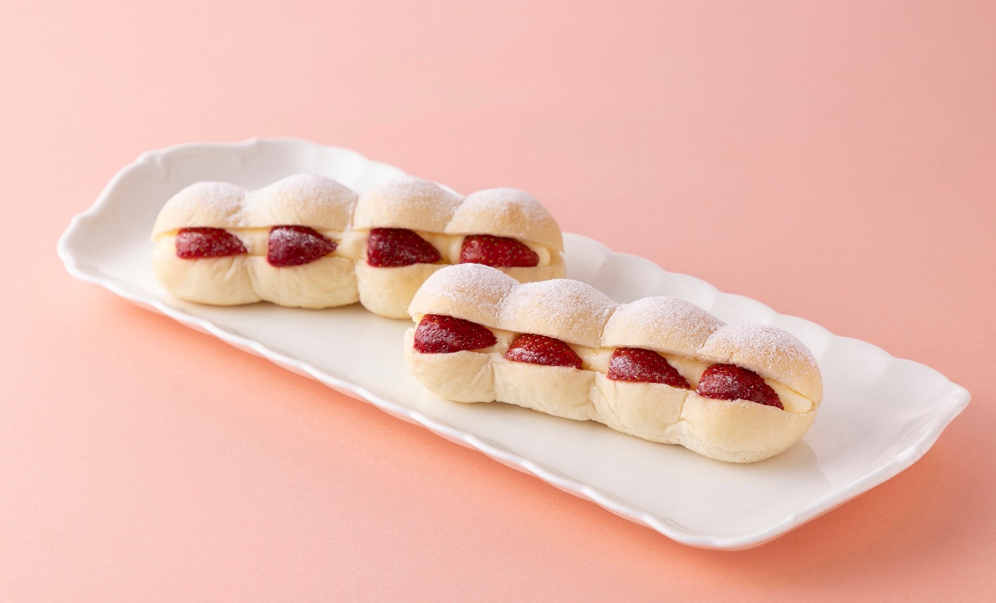 ミルククリームといちごのコンポートが入った、ひと口サイズにちぎって食べやすい菓子パンです。