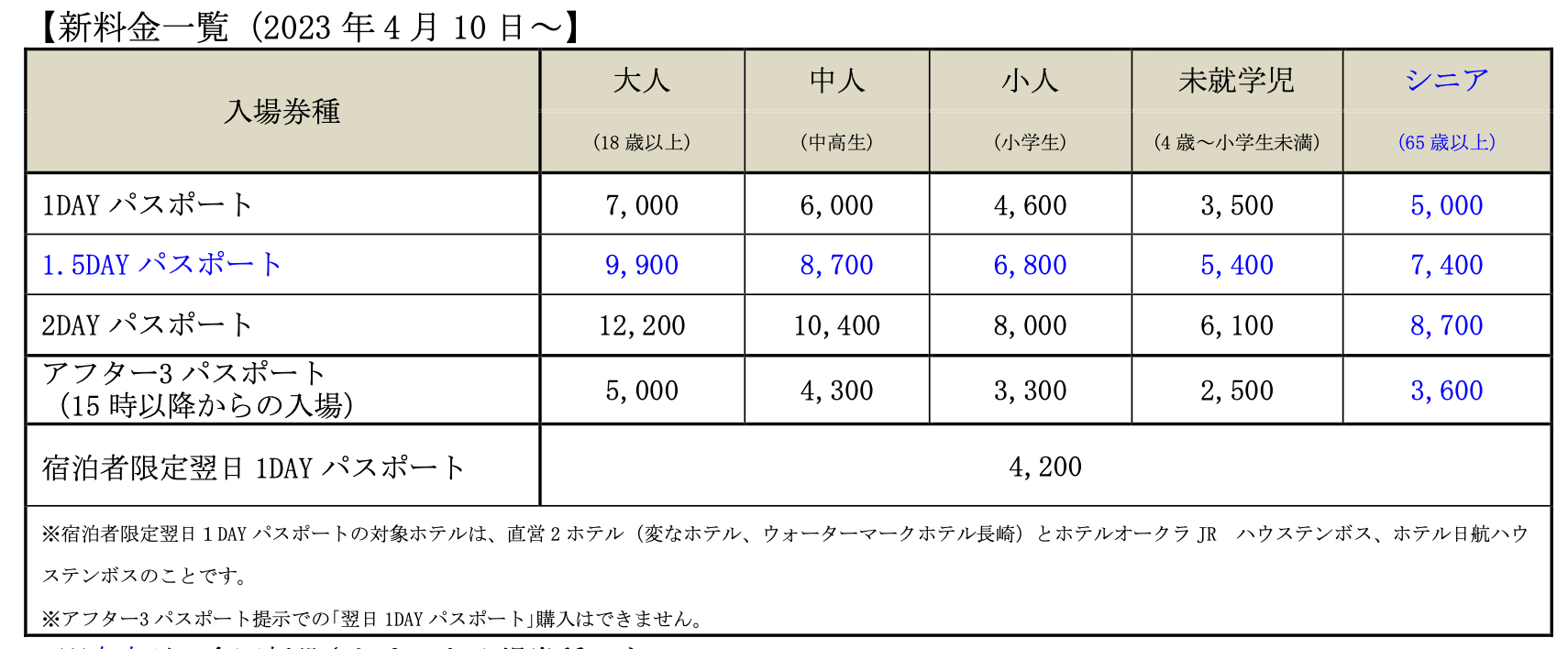 ※アフター5パスポート・3DAYパスポート、及びオフィシャルホテル宿泊者の1.5DAY・2DAY・3DAYパスポートおよび、おもいやりの区分は2023年4月9日をもって終了となります。