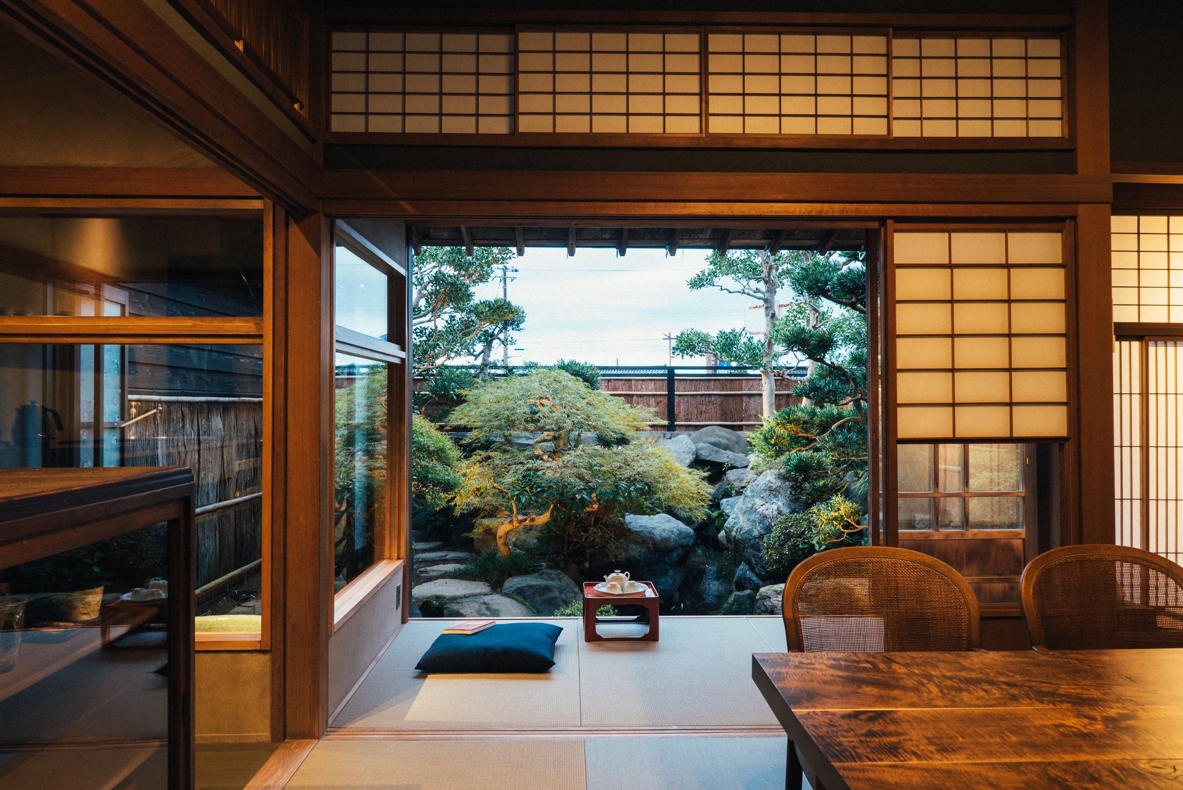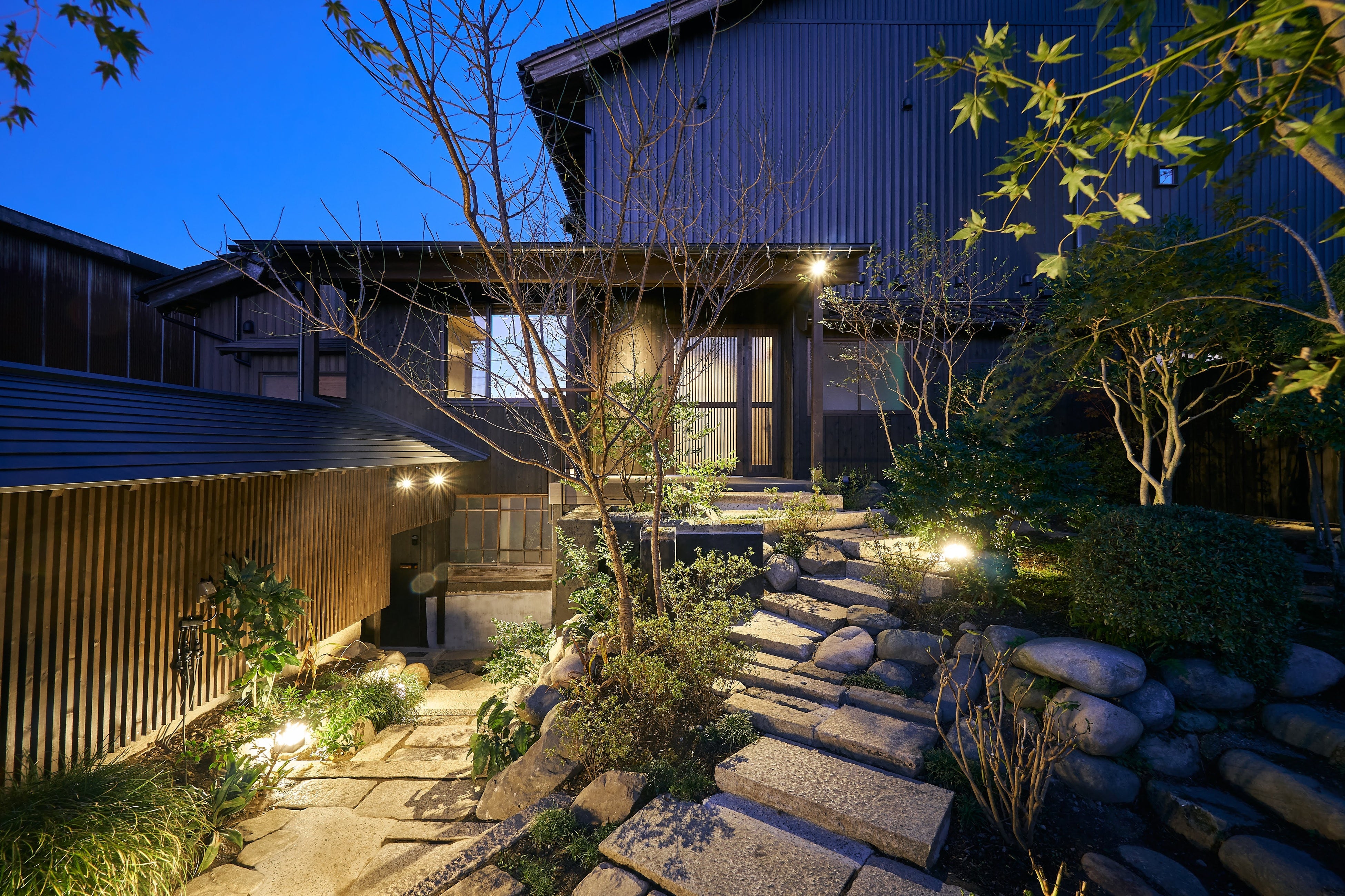 かつてこの地の歩みを見届けてきた料亭は、「巴/TOMOE」の総称で1日1組限定の3棟の宿(「KIN-NAKA」「TenNE」「MITU」)に生まれ変わりました。