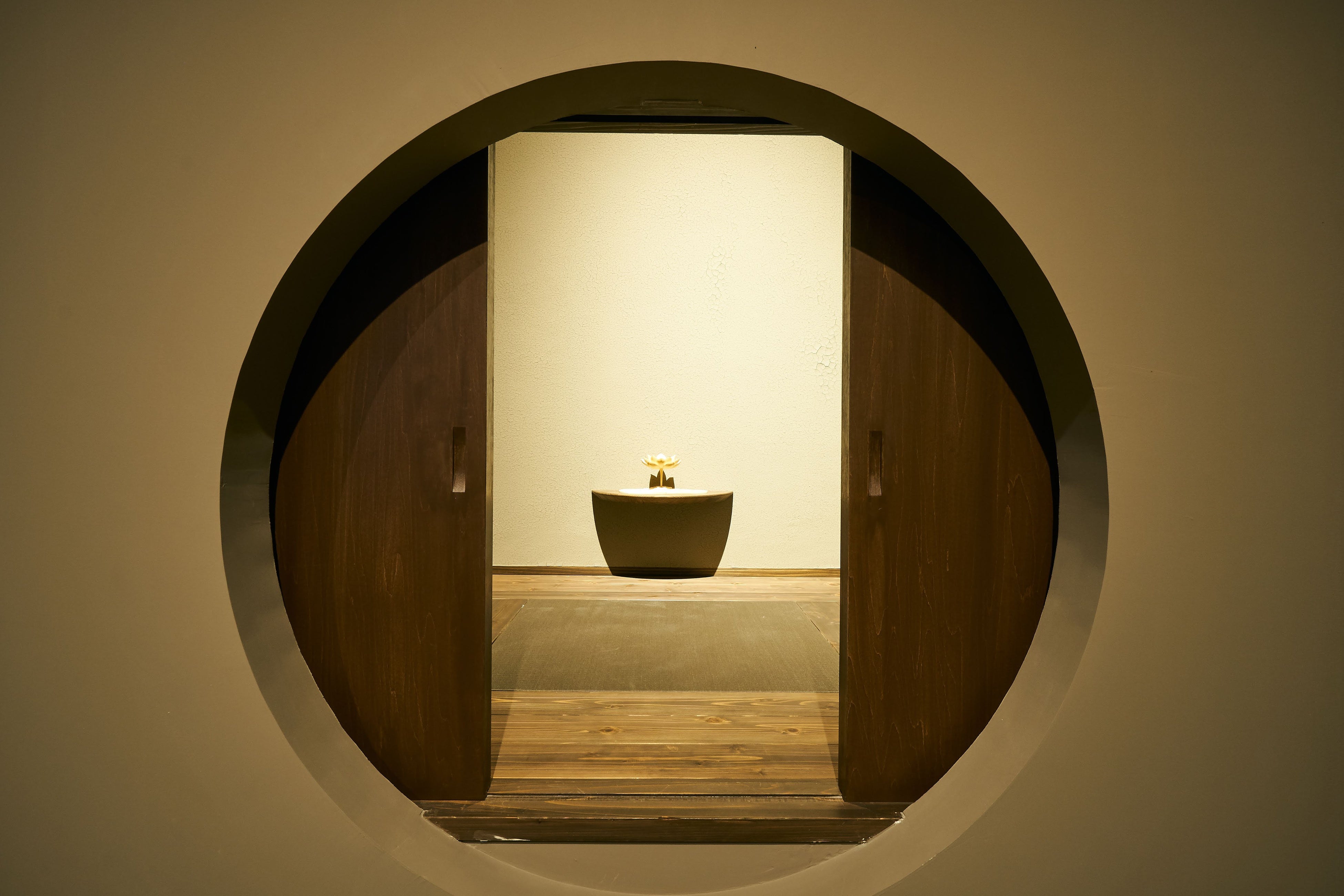 「菩 薩 像 が 身 に ま と う「 天 衣( て ん ね )」か ら 名 を 取 り 、仏 師 ・ 石 原 良 定 が 表 情 豊 か な 仏 像 を 安 置 し ま し た 。 空間の最奥部にある「瞑想室」では、天を見上げ、自らを見つめ直す時間が心地良い。 また、若手造園家が手掛ける庭と相まって自然のリズムを感じられます。