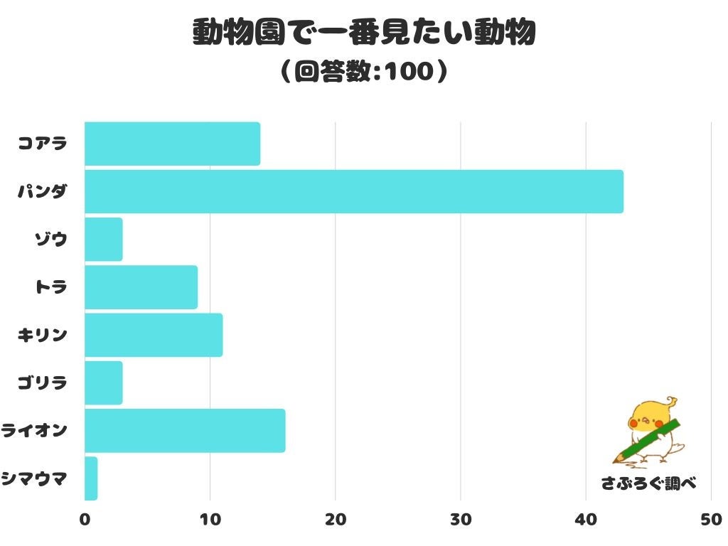 動物園で一番見たい動物をアンケートにて調査したところ、1位は「パンダ」でした。