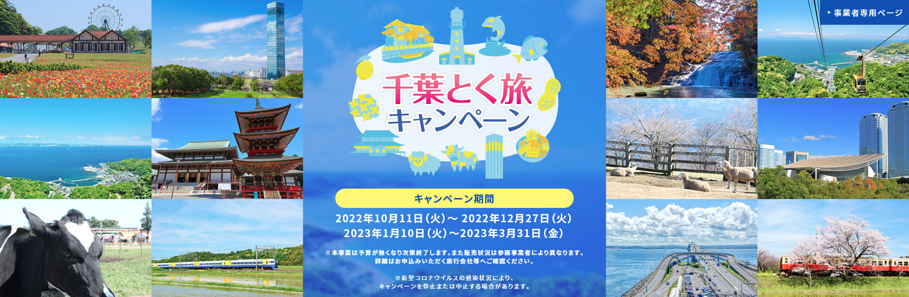 千葉県独自の観光需要喚起策として、1人1泊5,000円以上の宿泊者を対象に、