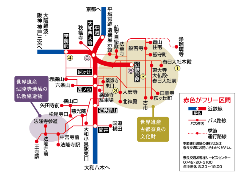 ■奈良交通バス奈良・斑鳩エリア内フリー区間1日間乗り放題