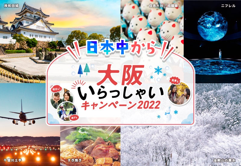 ※新型コロナウイルスの感染症の再拡⼤など、感染状況によって実施期間を変更または中⽌する場合があります。 ※詳細は、「⽇本中から⼤阪いらっしゃいキャンペーン2022」公式ウェブサイトをご確認ください。