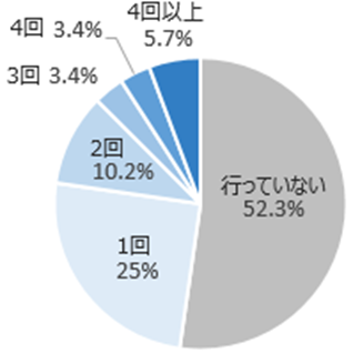 A. 行っていない52.3%、1回25%、2回10.2%、3回3.4%、4回3.4%、4回以上5.7%