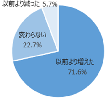 A. 以前より増えた71.6%、変わらない22.7%、以前より減った5.7%