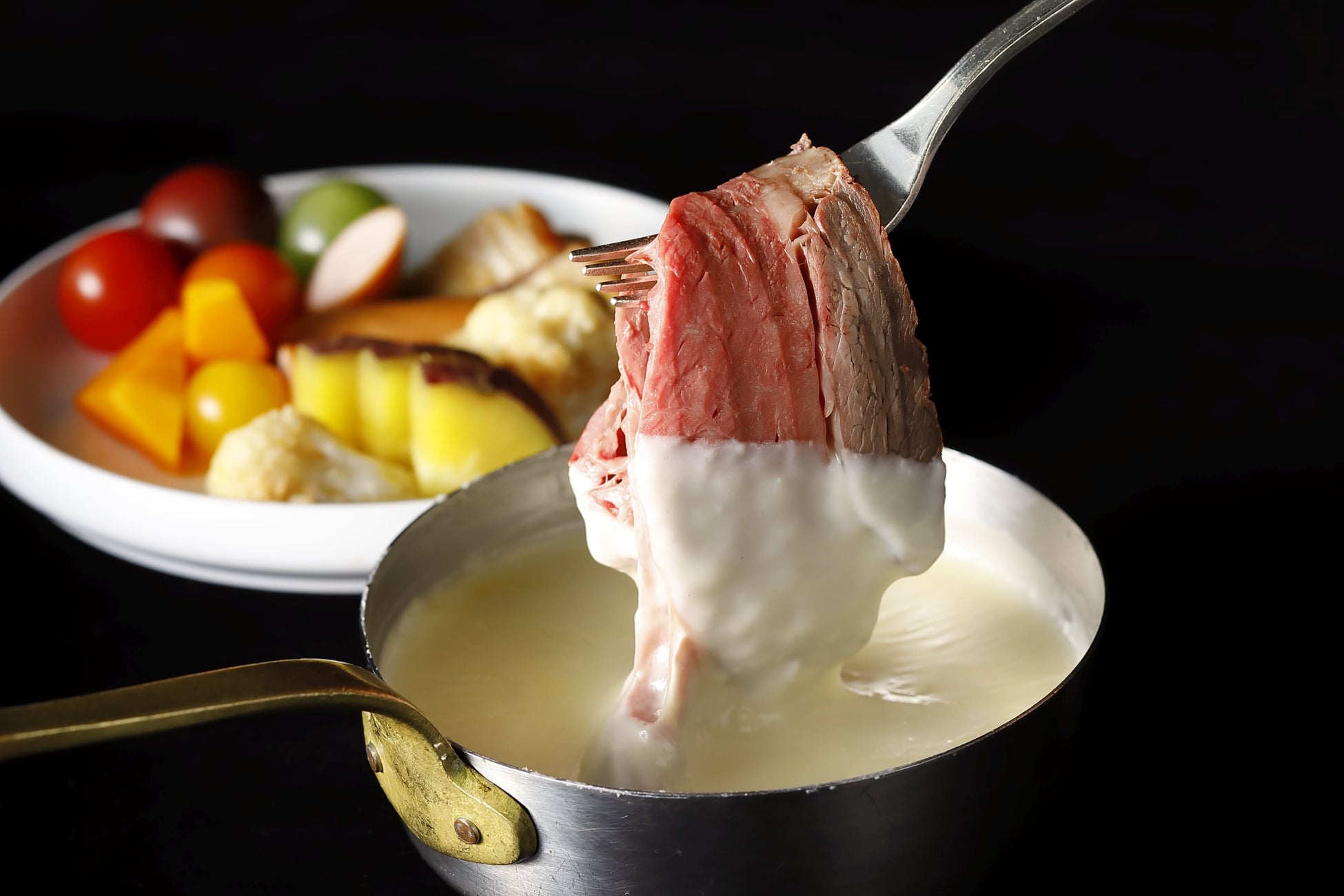 ビュッフェ料理のすべてをチーズフォンデュにできる新体験!”チーズフォンデュ”をビュッフェでお愉しみいただけます。特製のチーズソースをご用意しましたのでたくさんの料理や具材が並ぶビュッフェより、お好きなものをディップしてください。特におすすめのローストビーフはねっとりと絡むコクのあるチーズソースが肉の旨みを引き出し旨味倍増、必食です。なんでもチーズフォンデュ!