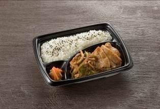 盛りつけました。おかずの下には、ご飯と食べてもおかずと食べても良く合う中華風の焼そばを敷き詰め、食べ応えのある弁当です。