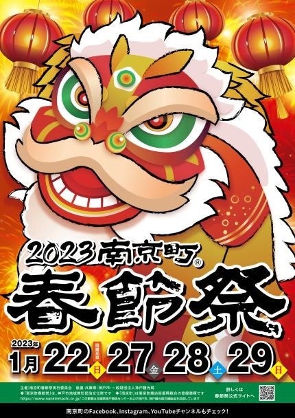 一般財団法人神戸観光局(所在地:神戸市中央区・以下「神戸観光局」)は、2023年1月22日(日)・27日(金)~29日(日)に、「2023南京町春節祭実行委員会」が企画・実施する旧暦の正月を祝う「春節」をアレンジした「2023南京町春節祭」を開催することをお知らせいたします。