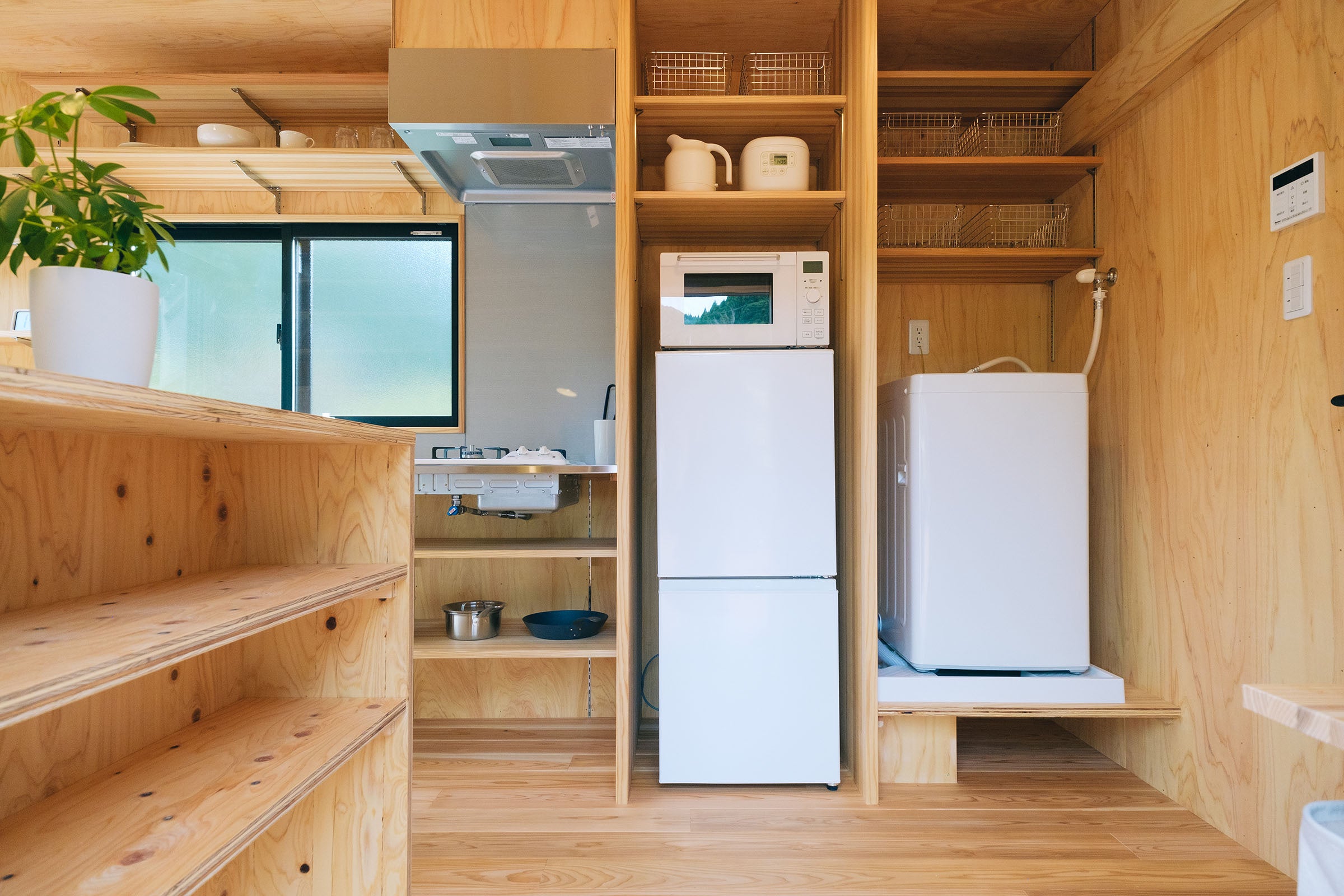 女性や若者に最適な単身移住者向けのコンテナ賃貸物件。ワンルームのコンパクトなつくりながらバス・トイレ別やスタイリッシュなキッチンなど、細かな設備やデザイン性にこだわったデザイナーズ単身住宅です。