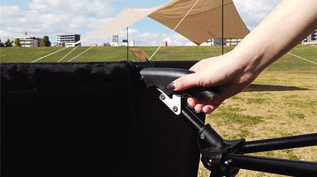 BRANCHのワンタッチコットが従来のコットと異なる点として挙げられるのは、何より今までにない操作感の「ワンタッチハンドル」を採用したこと。