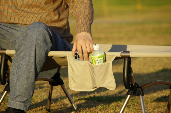 側面にはスマホやペットボトル、メガネなども入る便利なサイドポケットが付属。置き場所が不足しがちなキャンプだからこそ、重宝すること間違いありません。(収納サイズ:縦17cm×横14cm ×2ポケット)