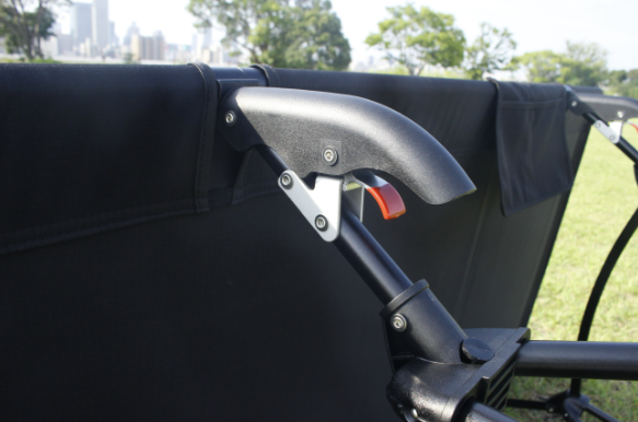 従来のコットでありがちだった「外すときの反動が強い」といったことのないハンドル式は、レバーの誤操作を防ぐ役目も果たしており、ロックがされておらず使用中に外れてしまうといった心配もありません。