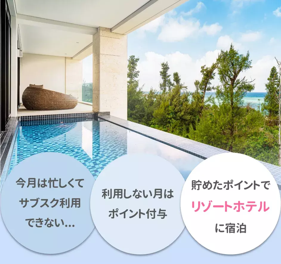 「UMITO LIFE」は、厳選した全国の海辺に立地する、ラグジュアリーな別荘に泊まることのできるサブスクリプションサービスです。9ヶ月前から予約可能で計画的に利用しやすく、仮に利用しない期間があってもポイントが付与され、ポイントを消費することで、HORIJUKUの展開するUMITOブランドの、沖縄や熱海に立地するラグジュアリーホテルに宿泊することができます。