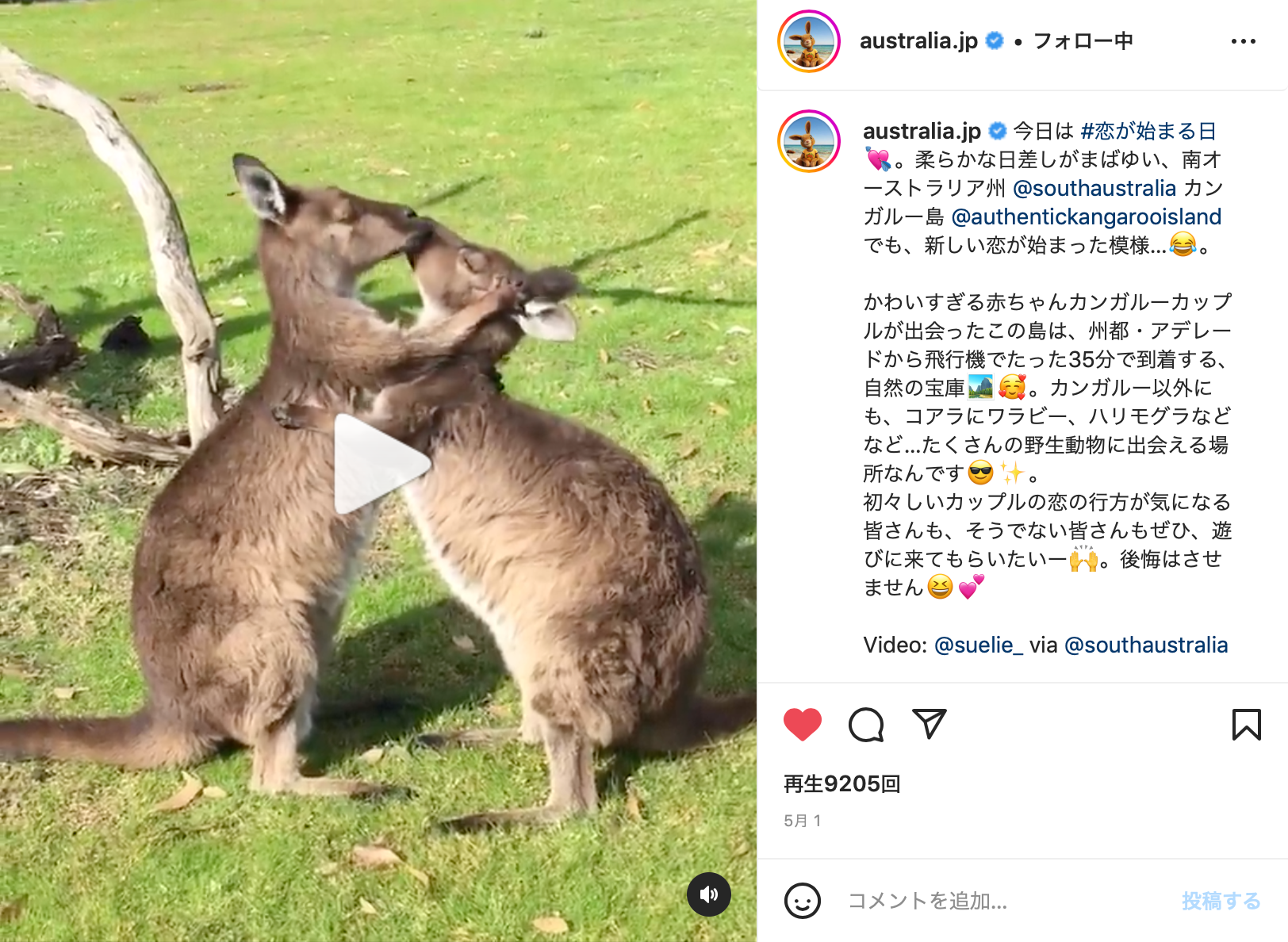 第2位は、かわいすぎる野生の赤ちゃんカンガルー2頭が、野生動物の宝庫カンガルー島で抱き合いながらお顔をペロペロしている動画。何ともほっこりするその姿にハートが集中しました。この動画から、「大自然の中で可愛い動物を観ながら日々のストレスを忘れたい!」といった声が聞こえてきそうです。