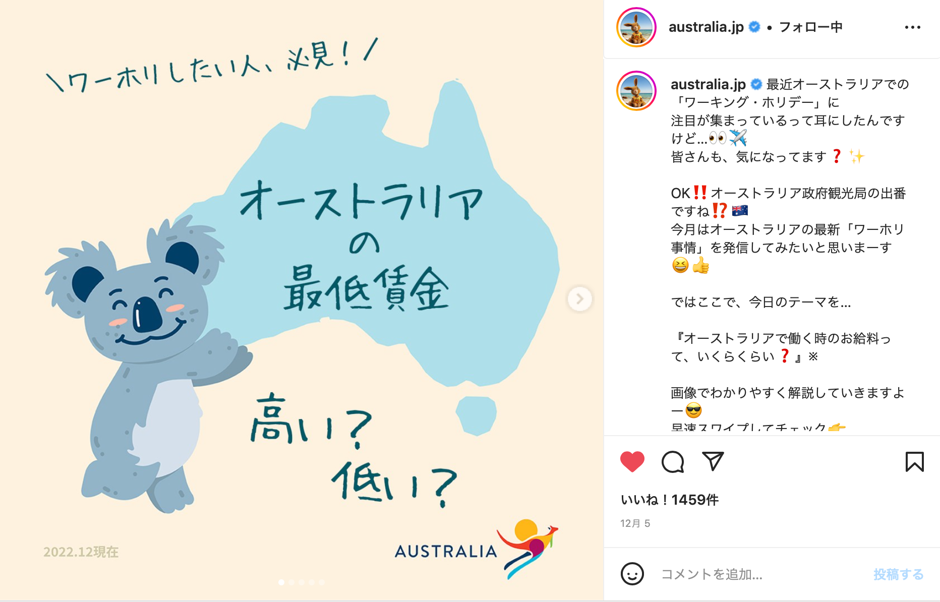 - 3位:ワーホリ希望者必見情報(https://www.instagram.com/p/ClxTjw3BBlZ/)