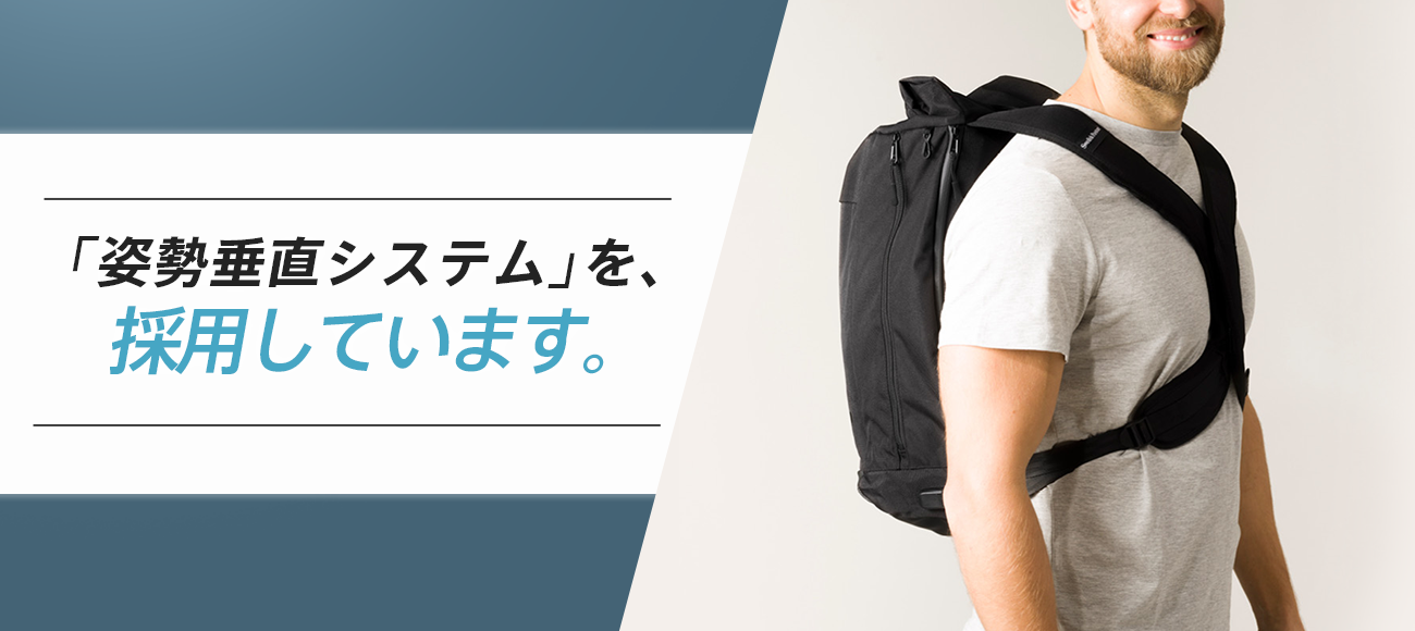 - 背負うだけで正しい姿勢に導き理想的な体圧分散を実現。 体に優しいバックパック。