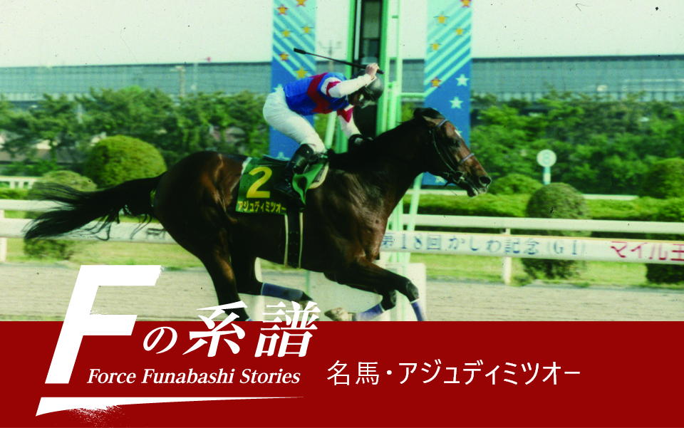 歴史を積み重ねていく中で作り上げた“FORCE FUNABASHIー強い船橋”を、様々な角度からファクトとともに紐解いていく連載コラム。名馬、人(厩舎関係者・騎手)、場(旧~新スタンド、内馬場の変遷)、レースといったさまざまなテーマを船橋競馬ゆかりの執筆者で連載します。vol.3では「名馬・アジュディミツオー ~瞬く間に天下を取った「逃げるガキ大将」~」と題し、元実況アナウンサーの及川サトルさんが、同馬を手掛けた故・川島正行調教師の息子さんで、この馬と間近に接していた現調教師の川島正一さんにお話を伺いました。