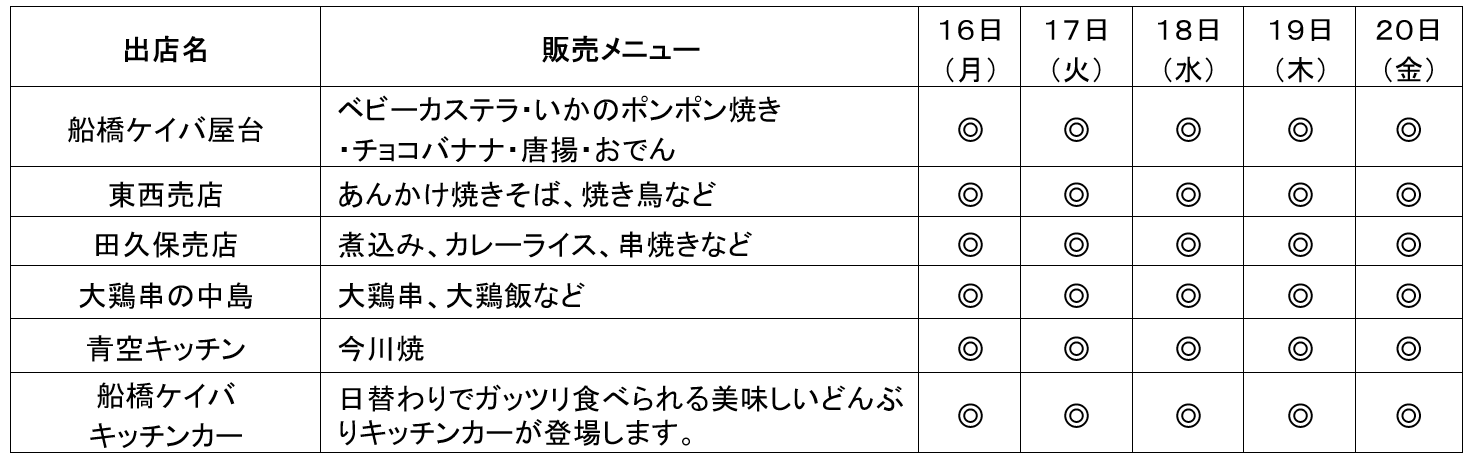 出店場所:入場門付近・スタンド2Fデッキ付近・スタンド1F投票所付近