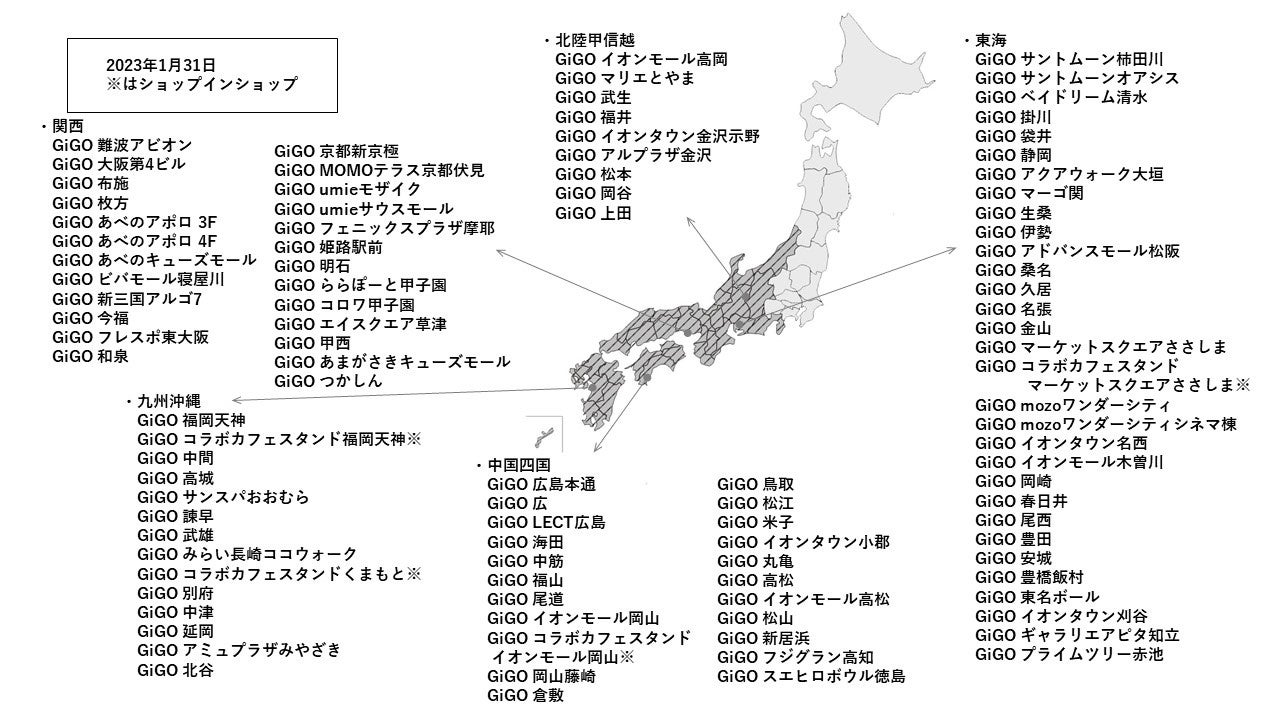 2022年3月9日に『GiGO 池袋1号館』からスタートした新生GiGOは、12月末日時点で186店舗まで拡大いたしました。1月は、東京都、愛知県、大分県、宮崎県において新たに4店舗の「GiGO」が誕生し、1月末に「GiGO」は190店舗になります。