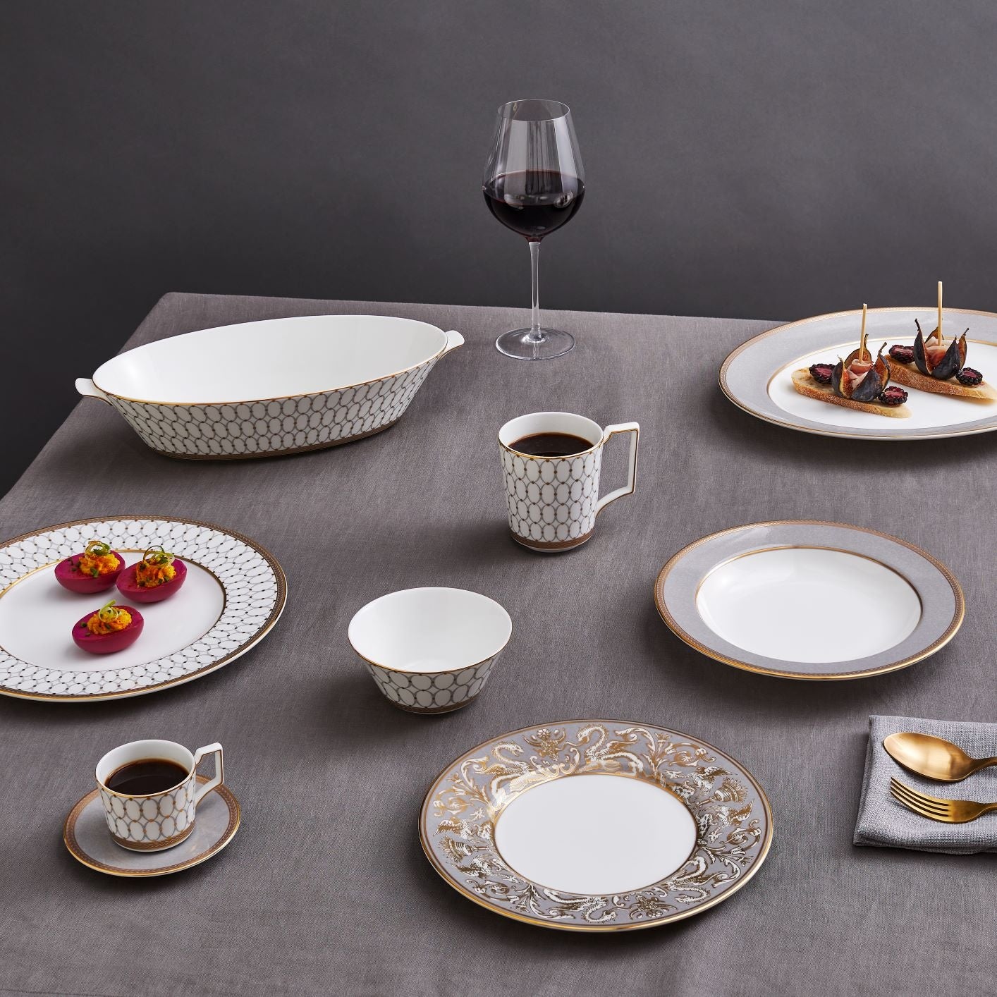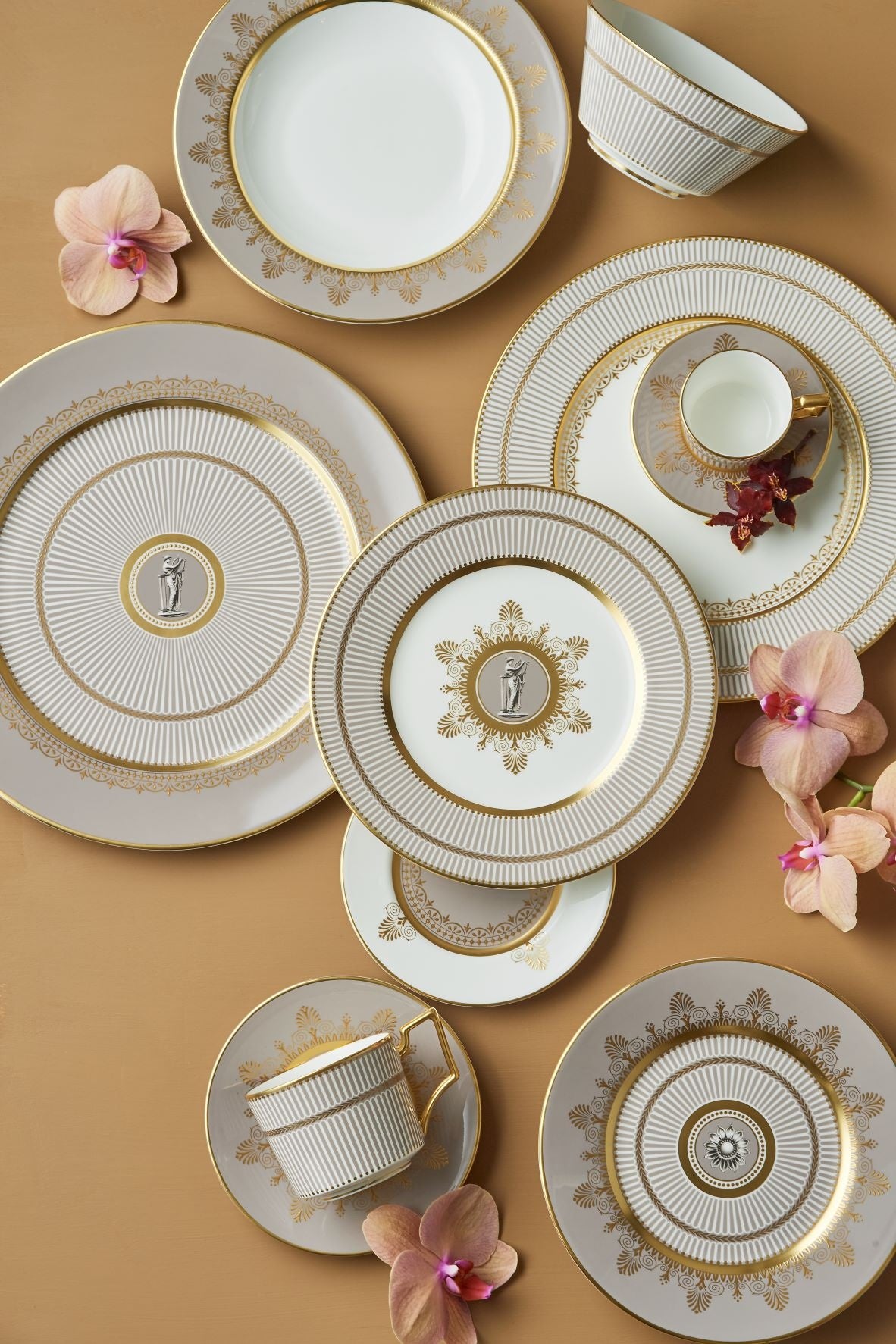2023年春に登場予定。ウェッジウッドの人気「ルネッサンス」シリーズからの新色です。ウェッジウッドのカメオに着想を得たモチーフを、優しい色合いのグレージュで表現しています。上品な金彩がアクセントとなり、盛りつけるお食事やスイーツを引き立てます。