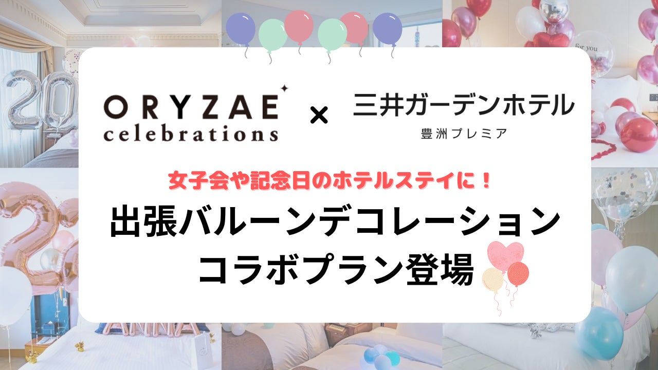 ORYZAE株式会社(本社:東京都港区、代表取締役:中島裕)が展開する出張バルーンデコレーションブランド「ORYZAE Celebrations (オリゼセレブレーションズ)」は、株式会社三井不動産ホテルマネジメント(本社:東京都中央区、代表取締役社長:雀部優)が運営する「三井ガーデンホテル豊洲プレミア」とコラボレーションし、ホテルステイを特別な1日にする「バルーンアレンジメント」プランの提供を開始しました。