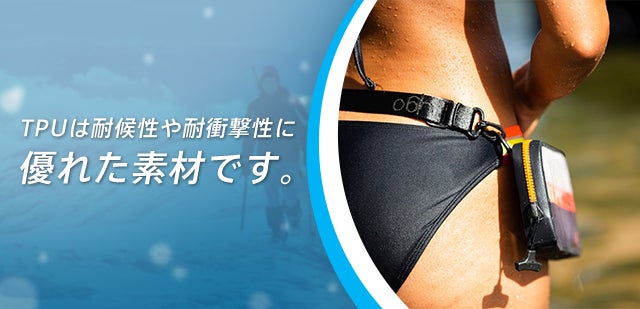 - 水中での写真撮影や電話対応も可能耐候性や耐衝撃性に優れたTPU素材。