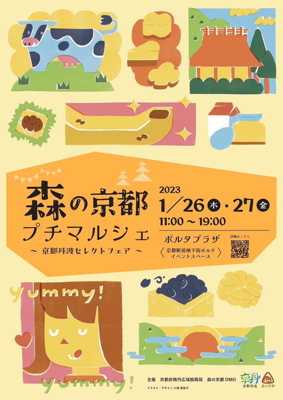 京都府南丹広域振興局では、京都丹波(亀岡市、南丹市、京丹波町)の魅力を伝え、より多くの人に足を運んでもらうことを目的に、京都丹波の魅力ある食やスポット等を発信する「森の京都プチマルシェ~京都丹波セレクトフェア~」を1月26日、27日の両日、京都駅前地下街ポルタにおいて開催します!京都丹波の魅力がもりだくさん!是非お越しください。