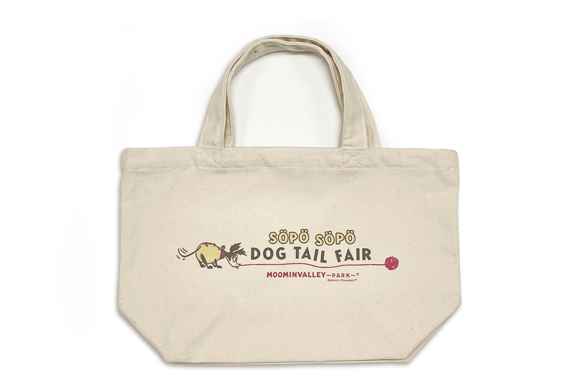 ソポソポ ドッグテイル フェアのロゴをあしらったトートバッグ。縦20cm×横30cmの持ち運びやすいサイズで、ワンちゃんとのお散歩など普段使いでも活躍します。