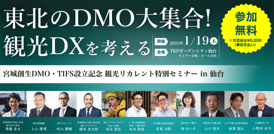 名称:宮城創生DMO・TIFS設立記念観光リカレント特別セミナー in仙台「東北のDMO大集合!観光DXを考える」