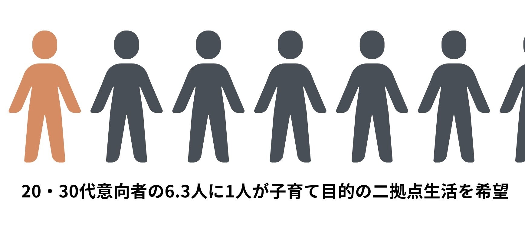 その中でも、子育て世代にあたる20・30代の二拠点生活意向者はその目的として「自然が多い環境で、のびのびと子育てする」と答えている人が15.8%存在します。これは概算すると約32万人に及びます。