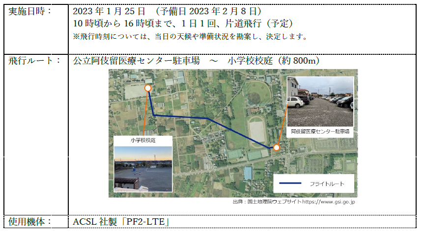 また、本実証に先立ち、2023年1月25日に地域の小学校にて、ドローンの社会受容性向上に向けたイベントを実施します。