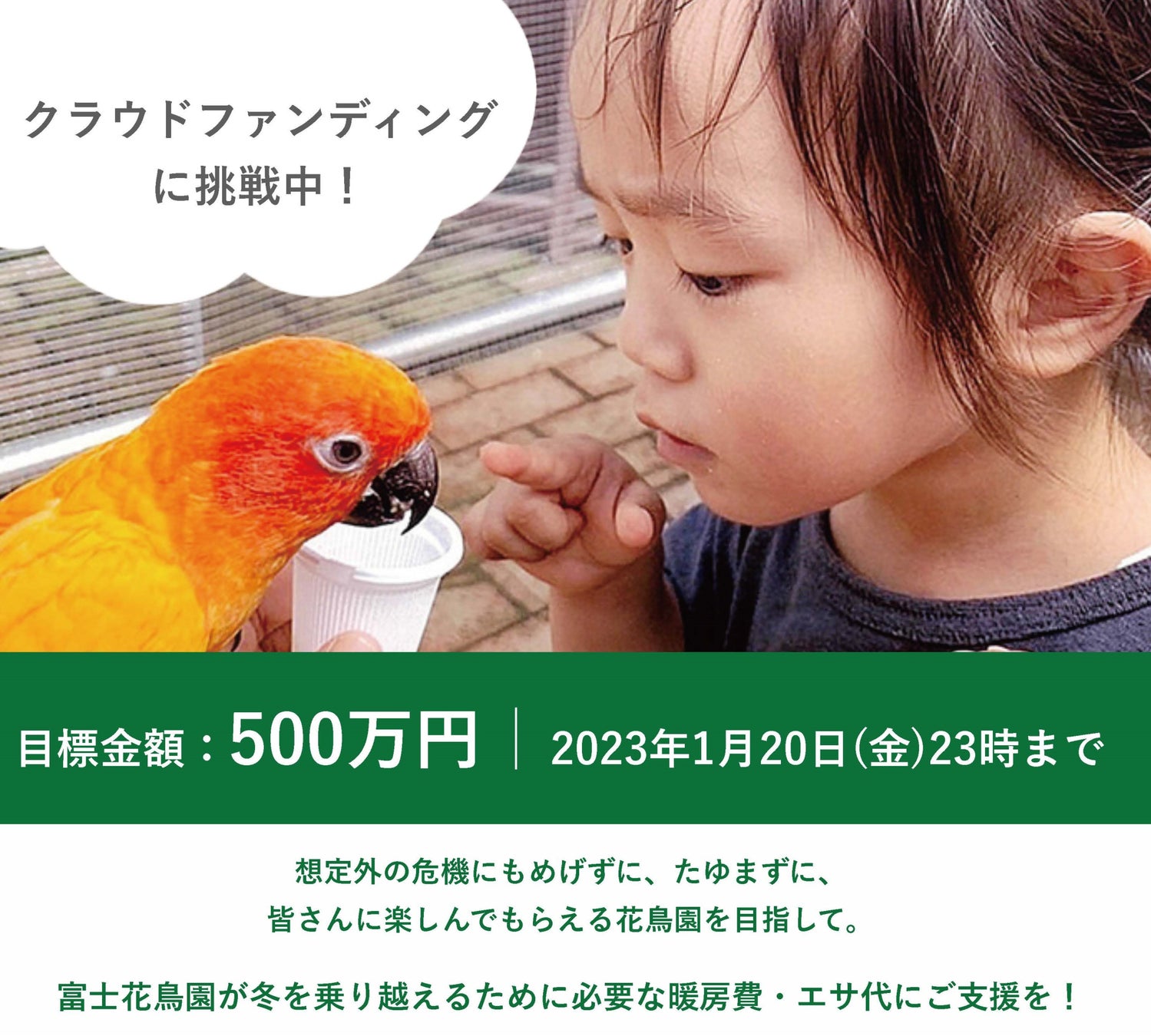 ➡【第二弾】鳥たち、花たち、お客様に、心も身体も温まる空間を。は2023年1月20日23時終了です。 https://readyfor.jp/projects/fujikachoen-dambo