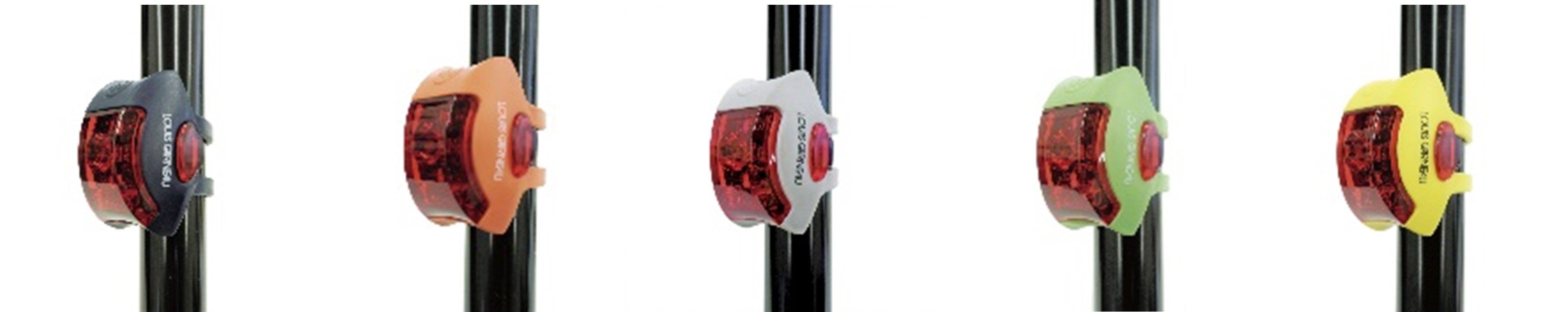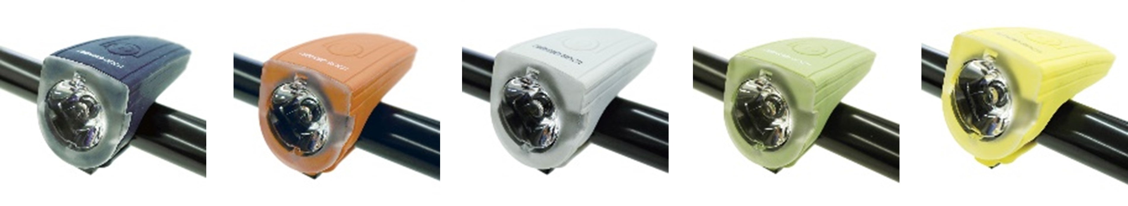 フレームカラーとコーディネイトしやすいカジュアルなシリコン製ライト。シリコンバンドにより工具なしで取り付けが可能。