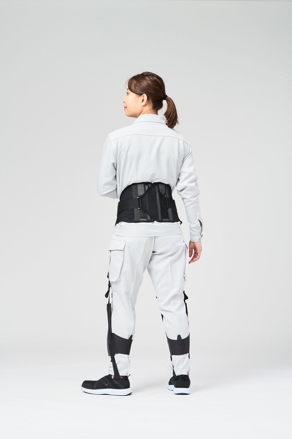 電力会社様から依頼を受け、階段や急な斜面・段差の昇降を頻繁に行う作業者に向けて開発したアシストスーツです。作業シーンに応じて簡単にON、OFFの切り替えができ、必要のない時は簡単に脱着できるアウタータイプという要望を形にしました。