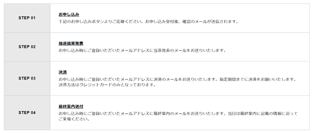 ※1次選考で落選された方も繰り上げ当選の可能性があります。繰り上げ当選された場合は随時メールにてお知らせいたします。