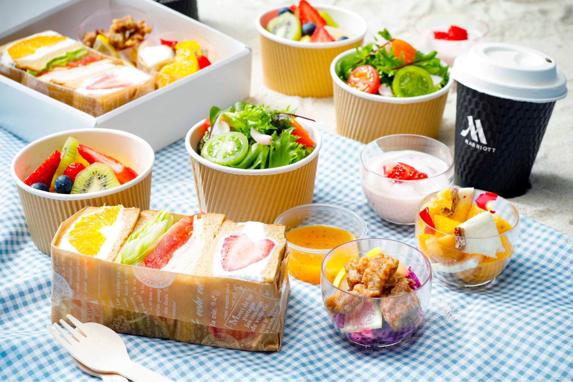 本プランは、ホテルメイドの朝食をテイクアウトし、美しい景色とともに朝ピクニックをお楽しみいただける宿泊プランです。昨年ご好評をいただいておりました朝食ボックスをリニューアル。和歌山県産のいちごや柑橘、串本産マグロ、紀州真鯛などの地元食材を堪能できるメニューをご用意しました。梅バターが塗られたフルーツサンドは春らしい甘酸っぱさを感じ、フォトジェニックなシェフ自信の一品です。旅の思い出としてお持ち帰りいただける、ホテルのロゴが入ったオリジナルクーラーバッグに詰めてお渡し。さらにピクニック気分を盛り上げるアイテムとしてバスケットの貸出しもご用意しております。ご滞在中は太平洋の絶景を眺めながら湯浴みを楽しめる展望温泉や、温泉付客室や和洋室などお好みのタイプのお部屋でくつろぎに満ちた時間をお過ごしいただけます。