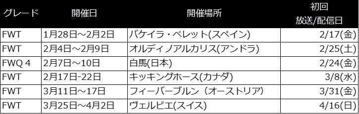 ■『Freeride World Tour 2023』J SPORTS 放送/配信 対象大会 開催スケジュール