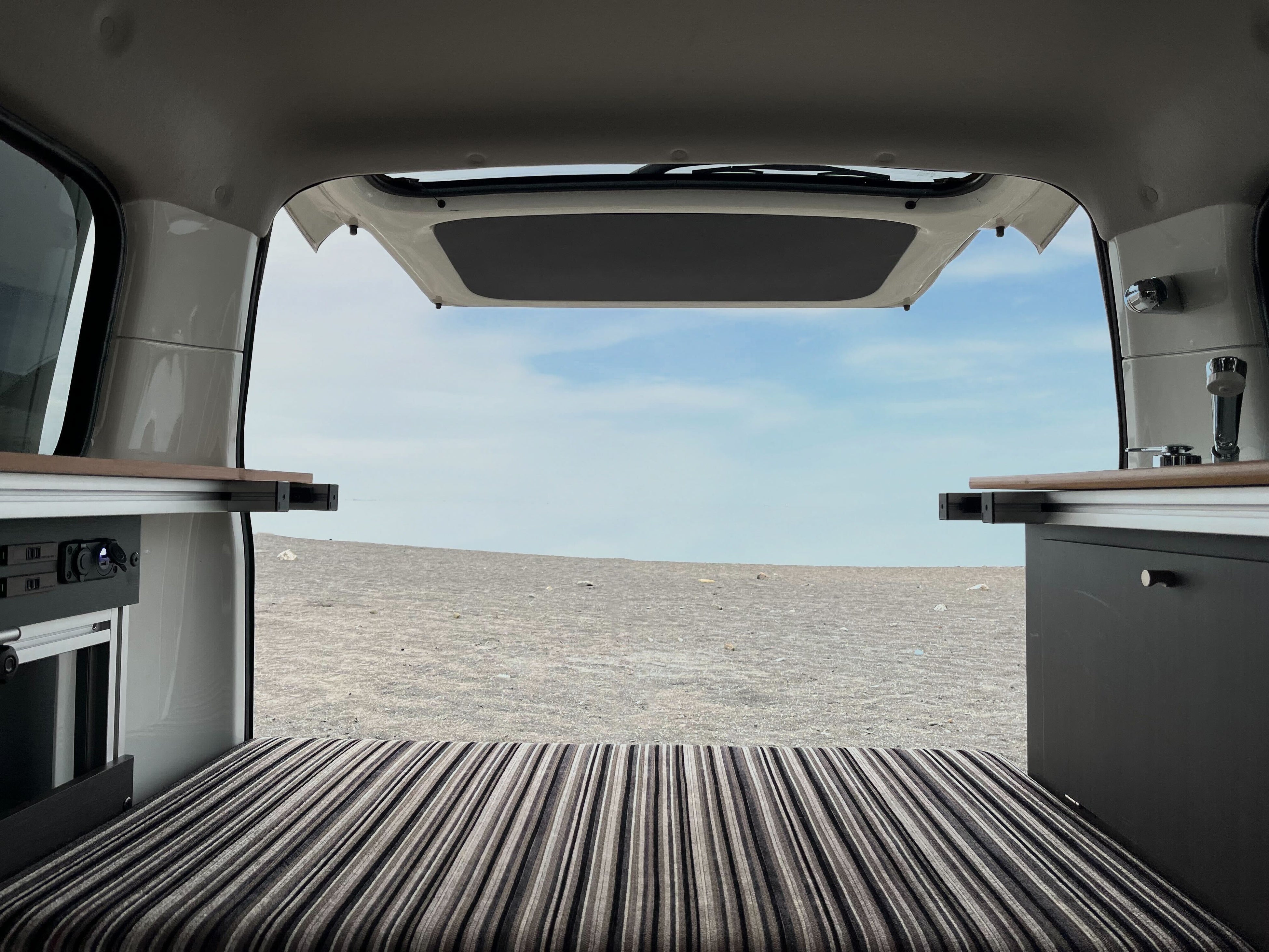 2022年10月よりサービスを開始した「MOBI-INN」は “これからの時代の新しい生き方をサポートする”をコンセプトにした、バンライフカーのシェアプラットフォームです。タウンエースベースのキャンピングカー「アルトピアーノ」を提供し、車内にはテーブルや収納ラック等が備え付けられており、車中泊もできる仕様(リヤシートが簡易ベッドになる)となっております。こちらのクルマを「MOBI-INN」専用ページから簡単に日時の選択、予約ができるサービスです。