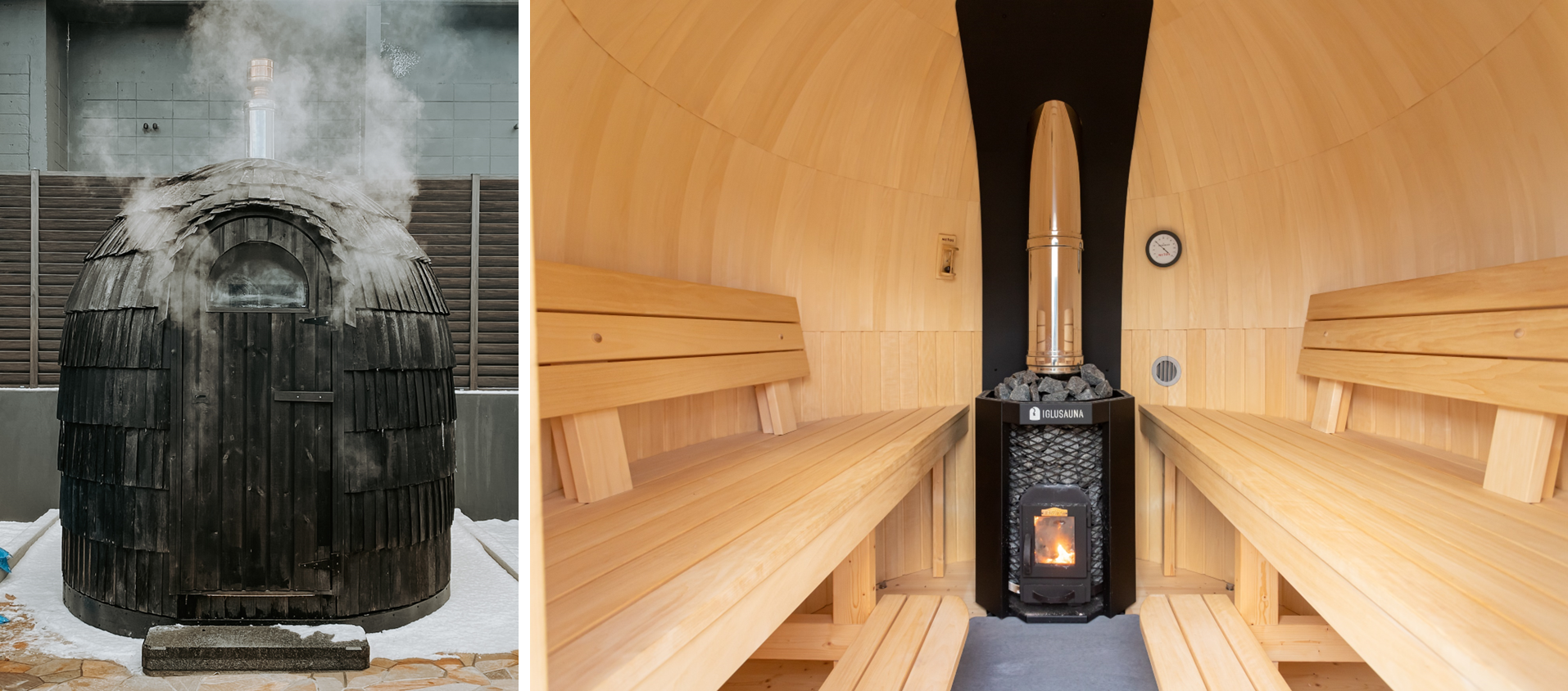 加えて、4種目には国内にはまだ数えるほどしかないエストニア生まれの「イグルーサウナ」が登場。木でできたかまくら型のサウナで、薪ストーブ型のサウナ。ホテルサウナで薪タイプを取り入れるのは非常に珍しく、屋外の露天風呂スペースに設置されます。